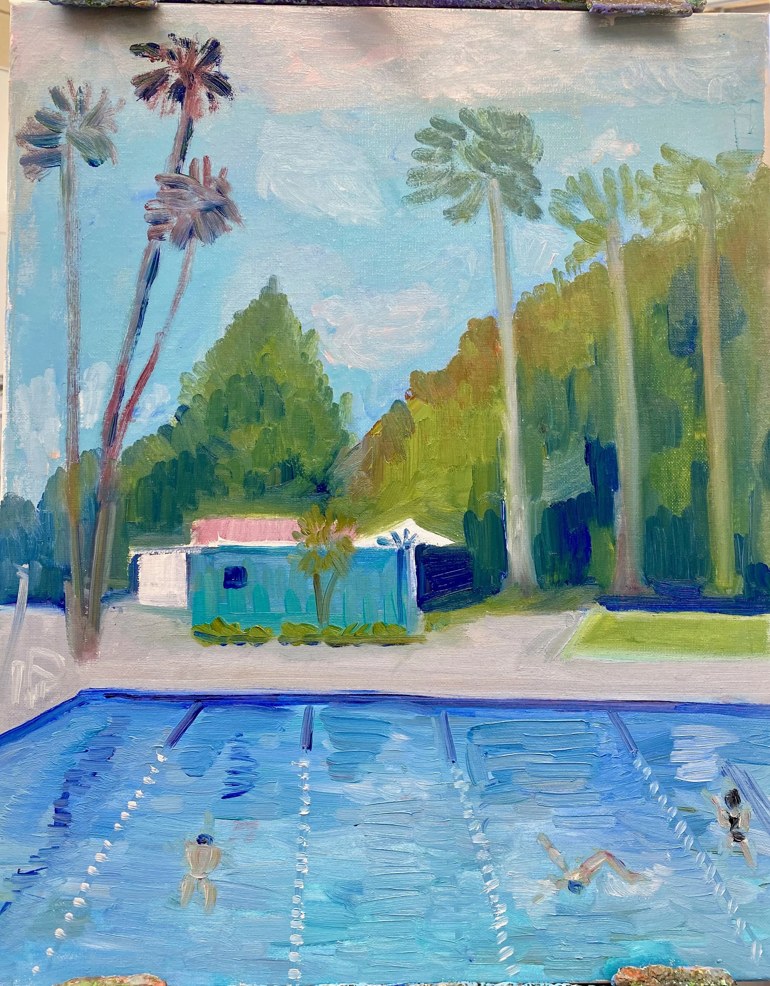 I I love to swim, and even just looking at other people swimming is relaxing. I definitely want to try more pool paintings.
