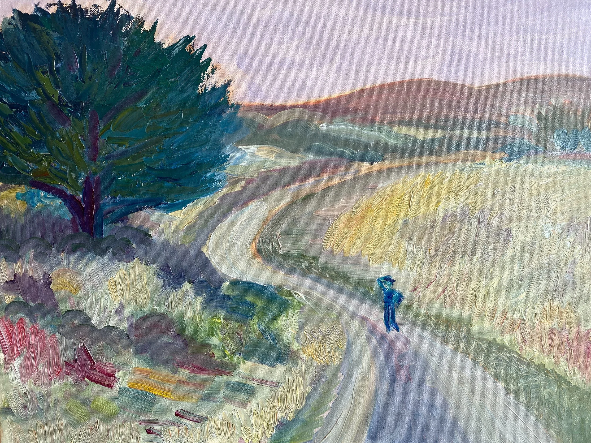 Lone Oak Trail oil on linen square. The hills were so dry they were turning lavender.