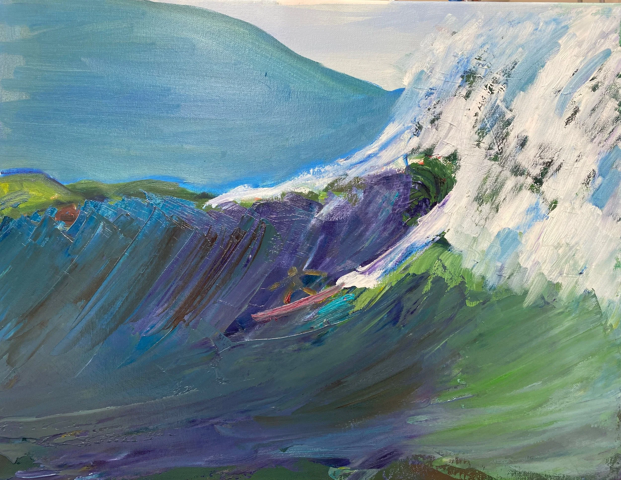 Big wave 16x20, painted over another painting, and I like the effect. The waves just keep getting bigger.