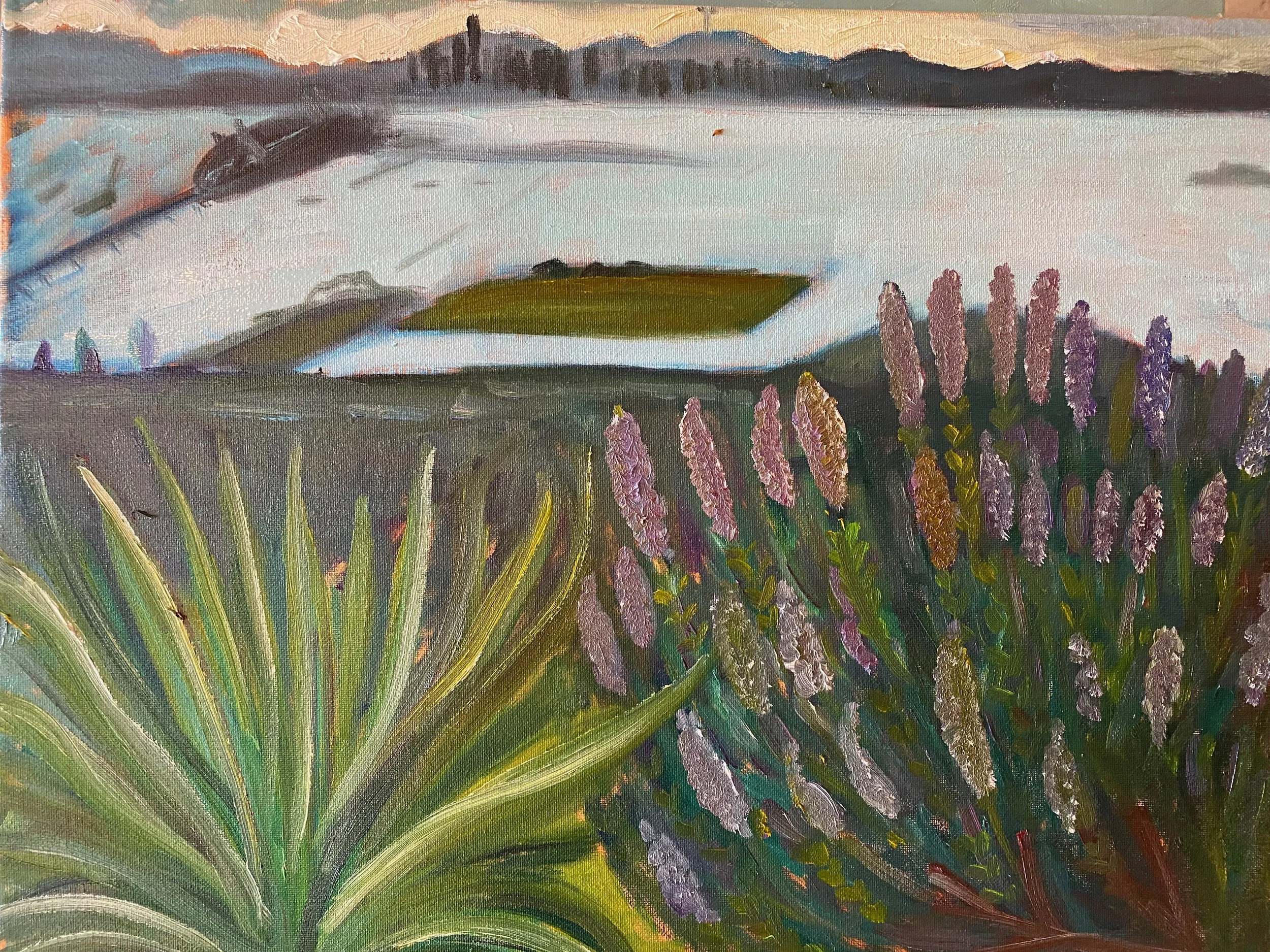 Point Pinole Edge 16x20. Painted in a plein air class with Rebeca Garcia-Gonzalez who helped me get there.